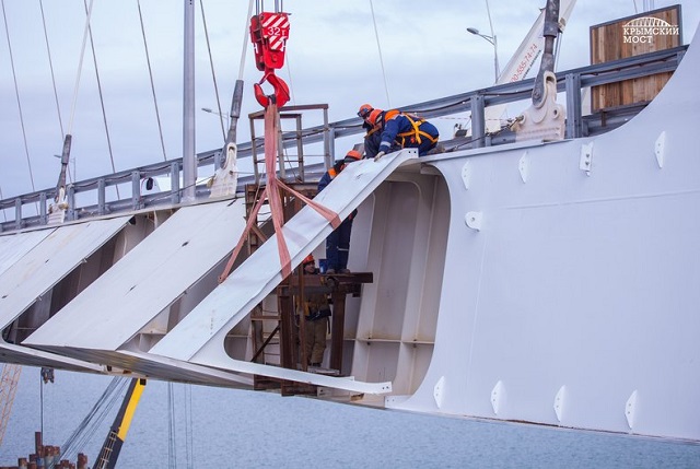 В сети появились свежие фото с места строительства Крымского моста, который должен соединить аннексированный Крым с территорией России.