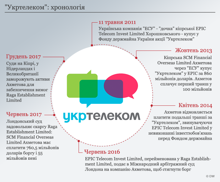 При этом холдинг Рината Ахметова пытается в Международном арбитражном суде в Лондоне вернуть "Укртелеком" компании Raga, получив обратно заплаченные 100 миллионов долларов.