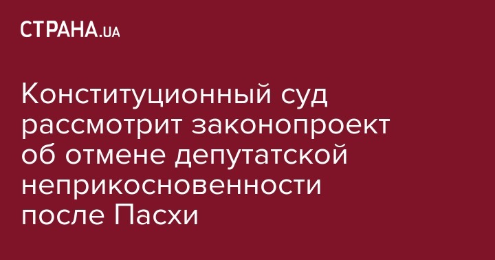 Так, 11 апреля в 11:00 состоится пленарное заседание Большой палаты КС для начала рассмотрения дела по конституционному обращению Верховной Рады о предоставлении заключения по законопроекту №6773 об отмене депутатской неприкосновенности и соответствия его требованиям статей 157 и 158 Конституции.
