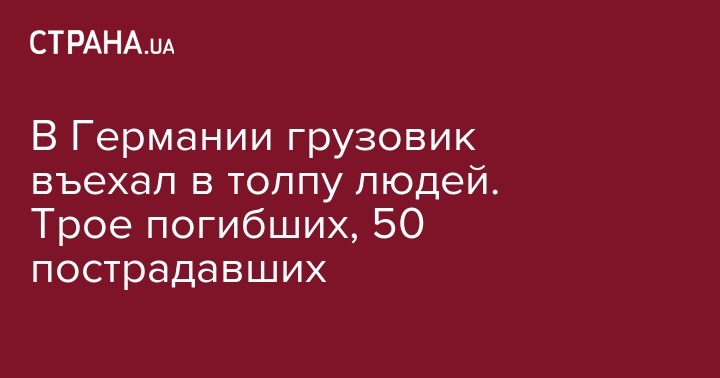 В немецком городе Мюнстер грузовик въехал в толпу людей. По предварительным данным, погибло три человека, 50 получили ранения.