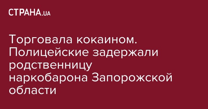"Правоохранители задержали женщину 1976 года рождения, которая оказалась родственницей одного из наркобаронов Запорожского региона. Злоумышленница распространяла на территории Запорожской области наркотические средства - метадон, кокаин, героин", - говорится в сообщении.
