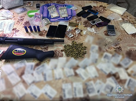 У 42-летней женщины во время обыска изъяли 500 граммов кокаина, электронные весы и банковские карточки, гладкоствольное ружье Meverick (калибр 12 мм) с 4 патронами к ней, 71 патрон калибра 9 мм, черновики с записями, 11 мобильных телефонов и сим-карты.