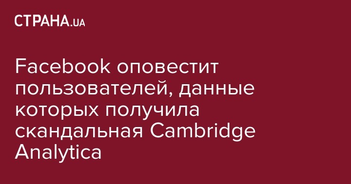 Компания Facebook начинает оповещать пользователей, личные данные которых могли быть получены британской аналитической фирмой Cambridge Analytica.