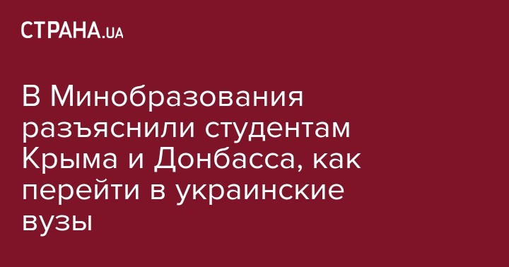 Также в МОН напоминают, что поступающие с неподконтрольных территорий Донбасса и Крыма, которые хотят получить украинское образование, могут поступить в перемещенные или уполномоченные учреждения высшего образования по упрощенной процедуре.
