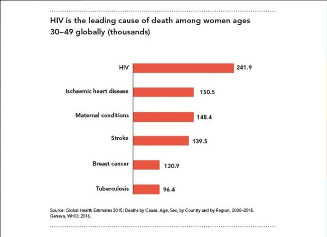 По данным Организации Объединенных Наций (ООН), в период с 2000 до 2015 года почти 242 тысячи женщин в возрасте от 30 до 49 лет умерли из-за вируса иммунодефицита человека.