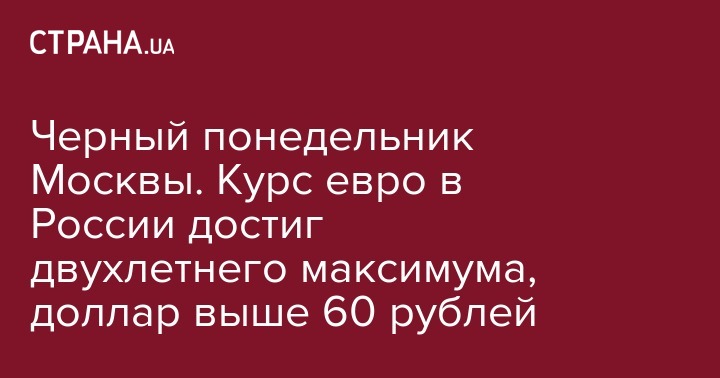 Доллар преодолел отметку в 60 руб. еще раньше, по состоянию на 18:00 мск на Московской бирже валюта торговалась по 60,29 руб. В течение дня доллар поднимался до 60,56 руб (в последнее время его курс колебался в пределах 55-57 рублей за долларов).