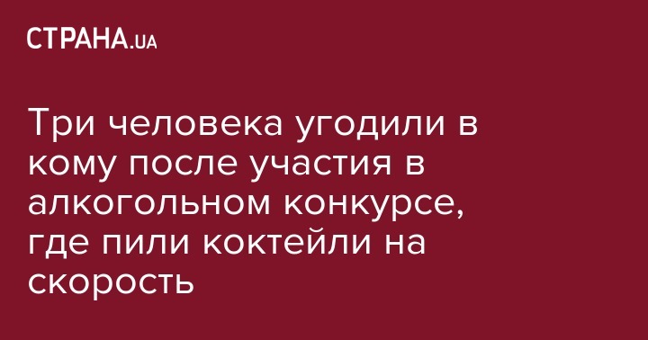 В городе Нарьян-Мар в России три человека попали в реанимацию после участия в конкурсе, где нужно было выпить 750 мл коктейля за одну минуту. Турнир проходил в одном из ночном клубов.