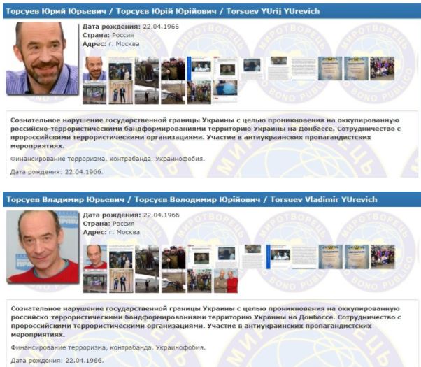 Причиной послужило то, что братья Торсуевы "сознательно нарушили государственную границу Украины с целью проникновения на Донбасс и участие в антиукраинских пропагандистских мероприятиях". Также их обвинили в финансировании терроризма, контрабанде и украинофобии.