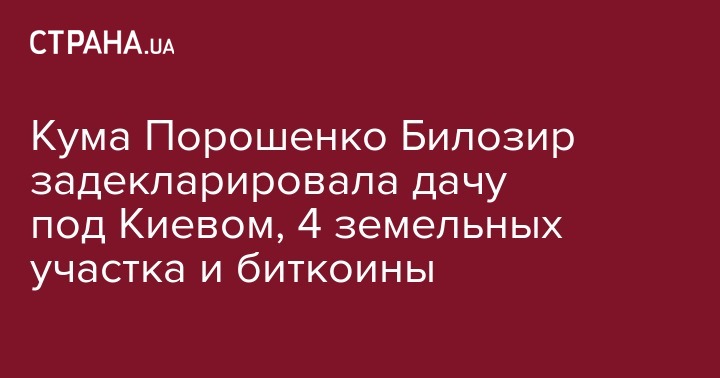 Народный депутат Оксана Билозир, которая является кумой Петра Порошенко, задекларировала четыре земельных участка, дачу под Киевом, яхту и криптовалюту.