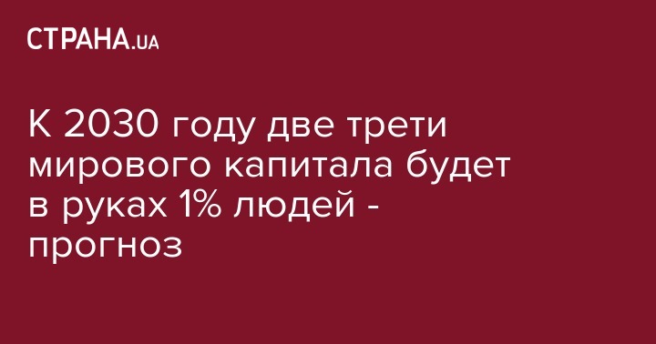 К 2030 году две трети мирового капитала будет в руках 1% людей - прогноз