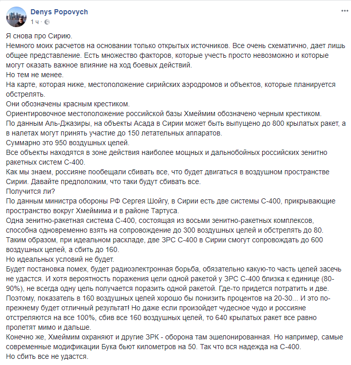 По их мнению, помимо ракет "планируется использовать самолеты для ударов по многочисленным целям в Сирии".