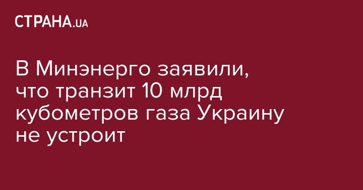 Украина не согласна с транзитом в объеме 10-15 млрд куб. м газа в год с 2020 года, как это предлагает российский Газпром, так как прокачка такого малого объема стране невыгодна.