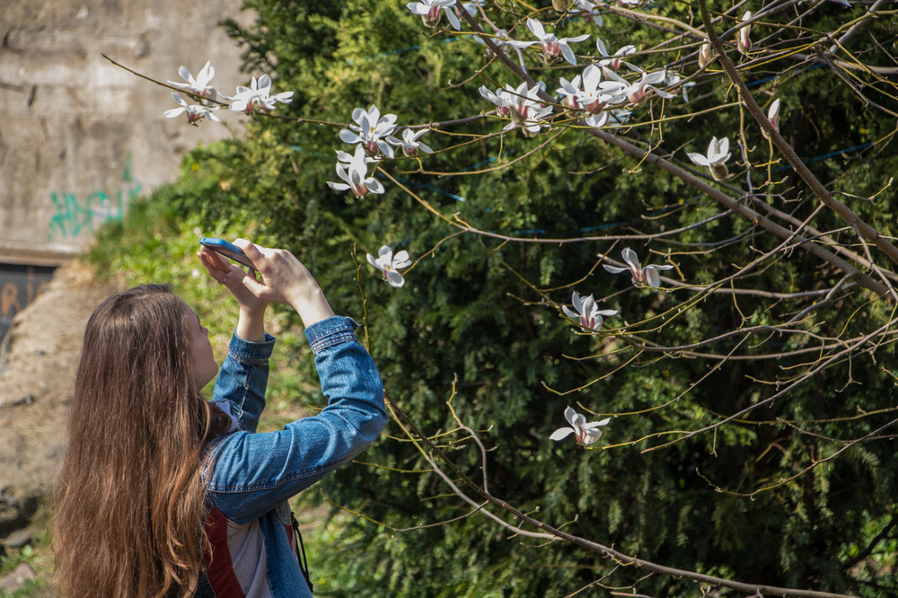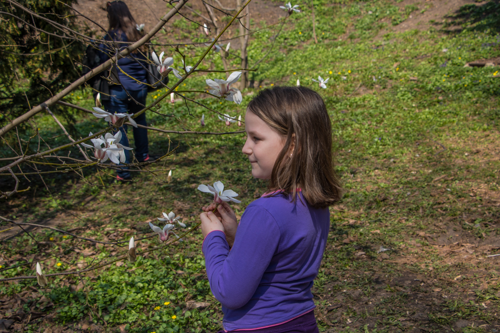 В парковую зону ботсада, где растет большая часть магнолий, вход бесплатный. Возле деревьев уже кружат любители фотографировать и фотографироваться, гуляют с детьми, влюбляются парочки.