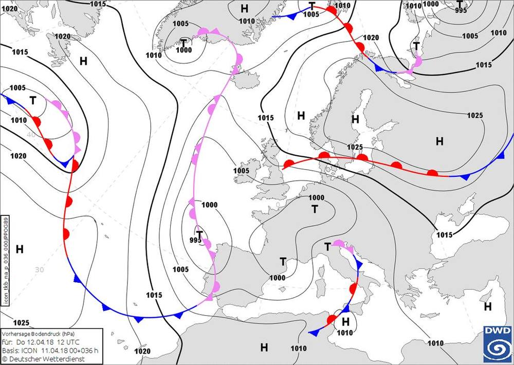 Синоптик Наталья Диденко показала движения в Украину нового атмосферного фронта на фото с спутника и на прогностической карте на 12 апреля.