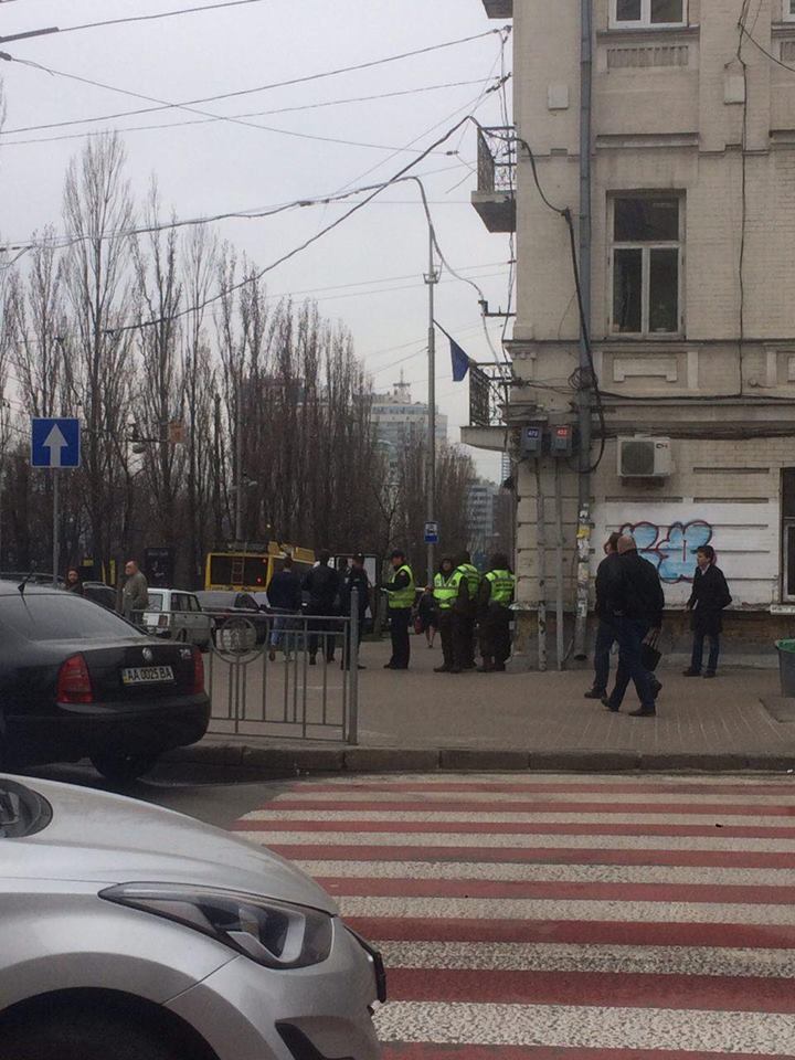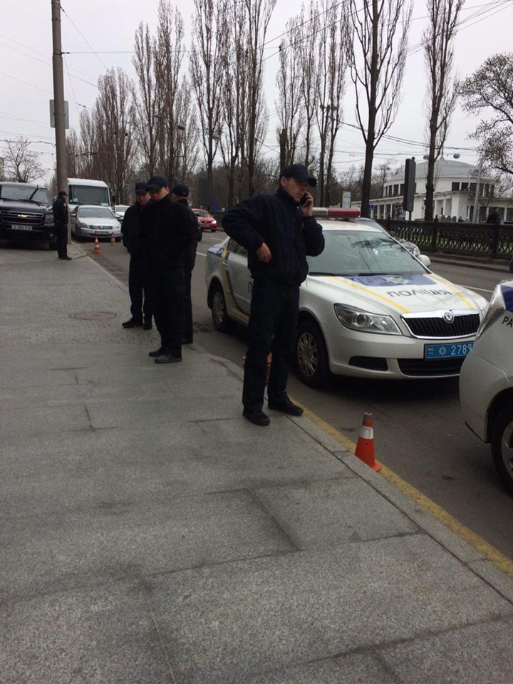 В Киеве, на бульваре Шевченко проходит 11-й международный форум по безопасности. Территория возле отеля Hilton, где проводится мероприятие, оцеплена Нацгвардией и полицией, на дорогах стоят регулировщики. Наблюдается скопление полицейских машин.