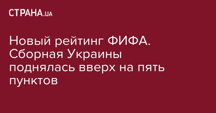 ФИФА представила новый рейтинг для национальных сборных. Сборная Украины поднялась в нем сразу на пять позиций. Наша команда теперь занимает 30 место, по сравнению с 35-м в прошлом рейтинге.