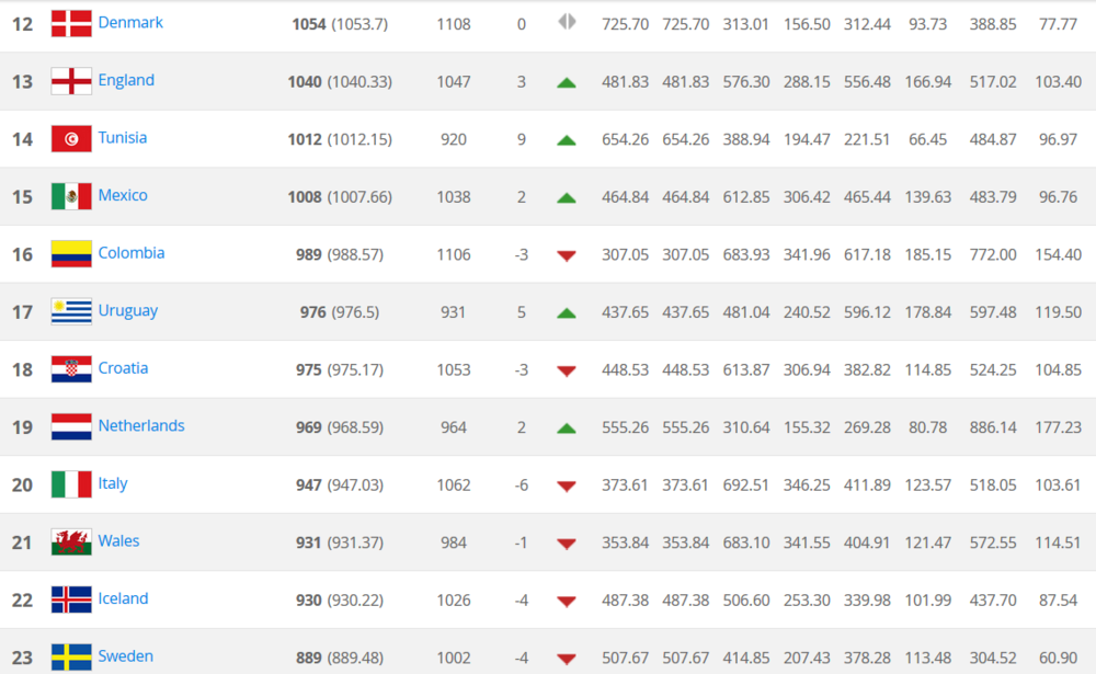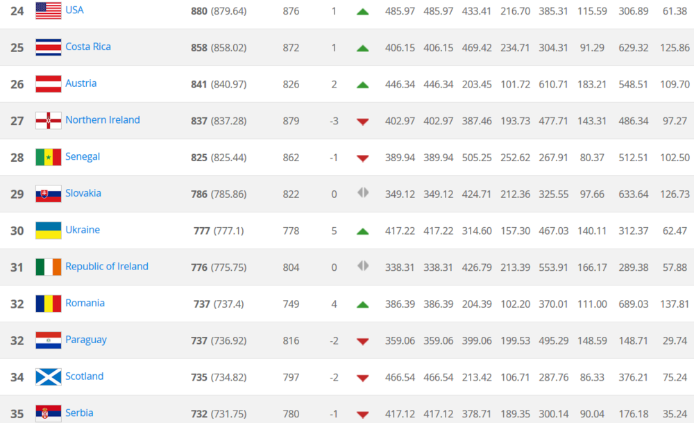 Наши соперники по Лиге наций, сборная Словакия занимает 29 строчку рейтинга, а Чехия идет на 45 месте.