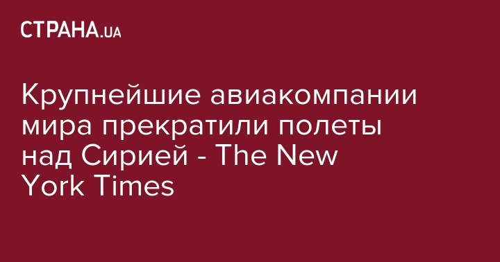 Крупнейшие авиакомпании мира прекратили полеты над Сирией - The New York Times