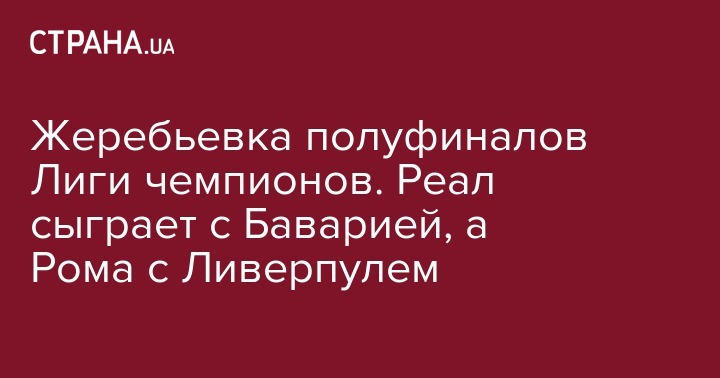 Мадридский Реал, который со скандалом обыграл итальянский Ювентус, встретится с Баварией. А Рома сыграет с английским Ливерпулем, который сенсационно выбил из турнира грозный Манчестер Сити Пепа Гвардиолы. Бавария и Ливерпуль первые поединки проведут у себя дома.