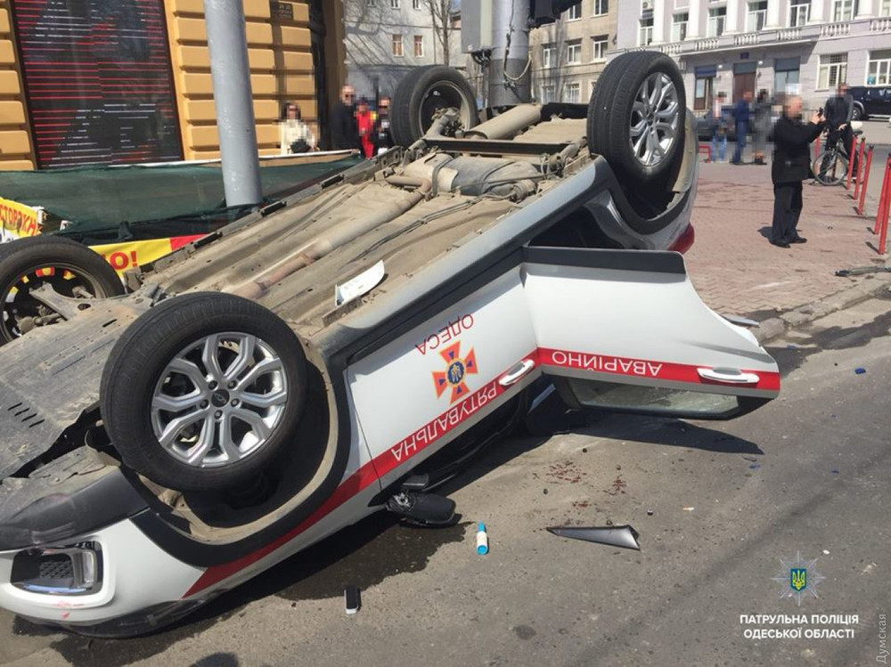 В Одессе на улице Ришельевской произошло крупное  ДТП - внедорожник Infiniti протаранил служебное авто Госслужбы по чрезвычайным ситуациям, которое спешило на место масштабного пожара в ресторане "Песок" с включенными проблесковыми маячками. Об этом сообщает "Думская"