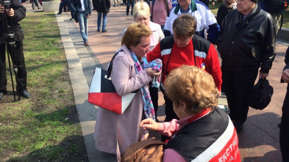 Поддержать ветеранов пришли и другие киевляне, которые начали упрекать националистов. Завязалась перепалка.