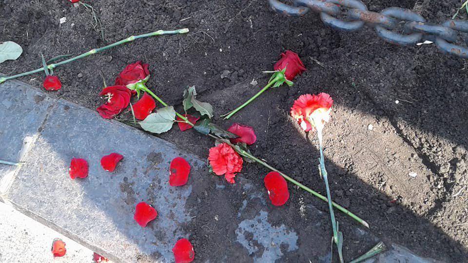 Цветы, которые лежали у памятника, националисты растоптали.
