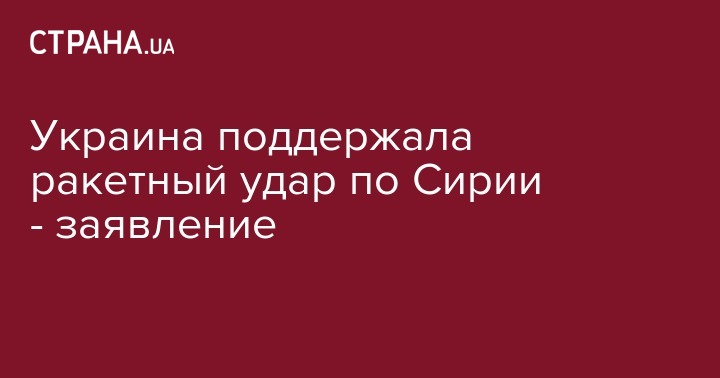 Украина поддержала ракетный удар по Сирии - заявление