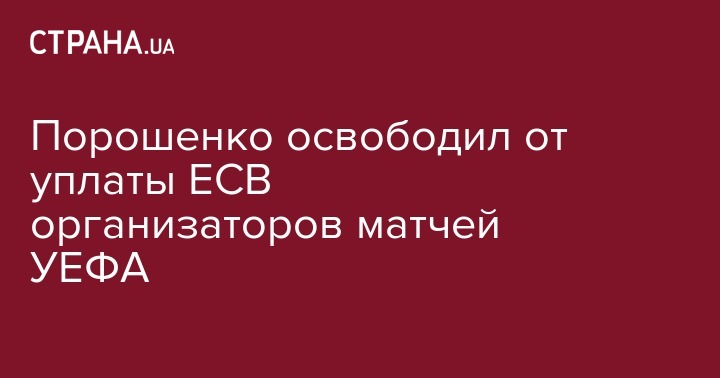Президент Петр Порошенко подписал закон, которым освободил от уплаты ЕСВ организаторов финальных матчей ЛЧ УЕФА. Об этом сообщает пресс-служба АП.