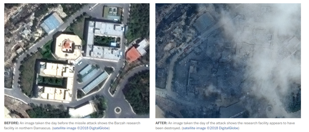Ранее Пентагон сообщал, что союзные войска уничтожили три запланированные цели. Первой целью был Центр исследований и разработок в Барзасе, за пределами Дамаска.