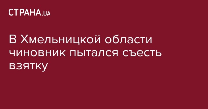 По данным ведомства, на взятке правоохранители разоблачили начальника одного из районных секторов Государственной миграционной службы в Хмельницкой области. Чиновник требовал от жителя Хмельницкой области 1600 гривен за ускорение оформления загранпаспорта. Во время задержания вымогатель пытался избавиться от вещественных доказательств и попытался съесть деньги.