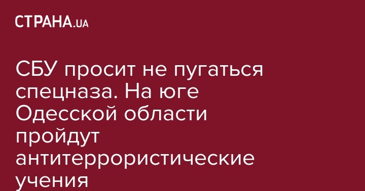 Служба безопасности Украины проведет антитеррористические учения на юге Одесской области (населенные пункты Затока, Сергеевка, Шабо, Прибрежное, Беленькое и прилегающие территории). Мероприятия запланированы на 17-20 апреля.