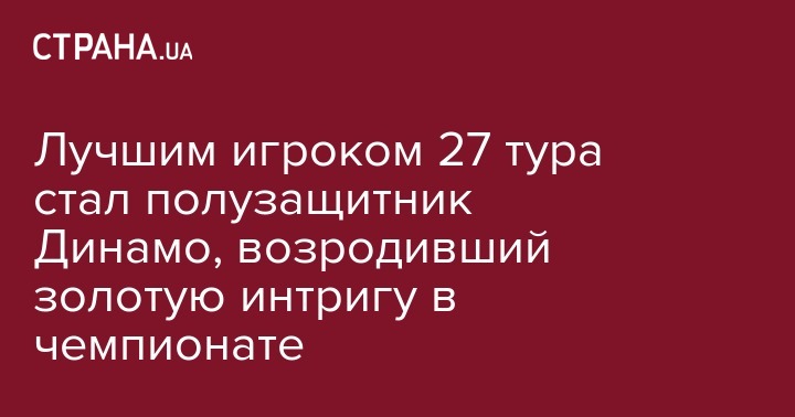 После окончания 27 тура чемпионата Украины по футболу, в котором Динамо обыграло Шахтер и возродило интригу в золотой гонке, Премьер-лига назвала лучшего игрока.