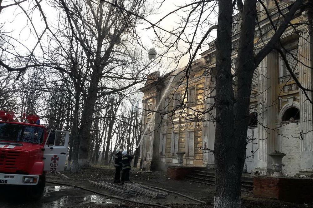 В Харьковской области спасатели ликвидируют пожар в усадьбе Шидловских, построенной в XVIII веке.