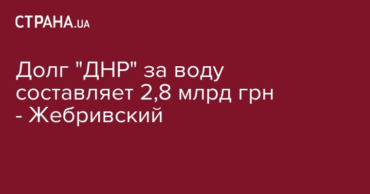Глава Донецкой областной военно-гражданской администрации Павел Жебривский заявляет, что долг за поставки воды в отдельные районы Донецкой области, неподконтрольные Украине, составляет 2,8 млрд грн, хотя расчеты производятся по меньшему тарифу.