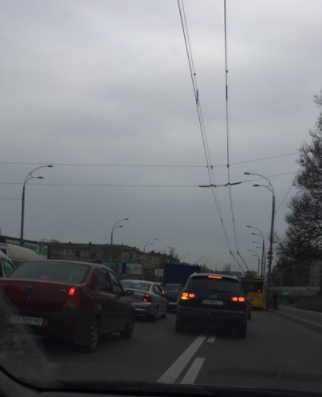 После ДТП на бульваре Дружбы Народов образовалась большая пробка, которая растянулась от моста Патона до Лыбедской площади.