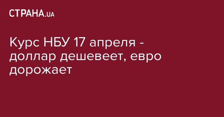 Во вторник, 17 апреля, Национальный банк установил официальный курс гривны по отношению к иностранным валютам. По сравнению с предыдущим рабочим днем доллар стал дешевле, а курс евро, наоборот, подрос на 10 копеек.