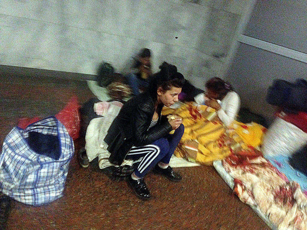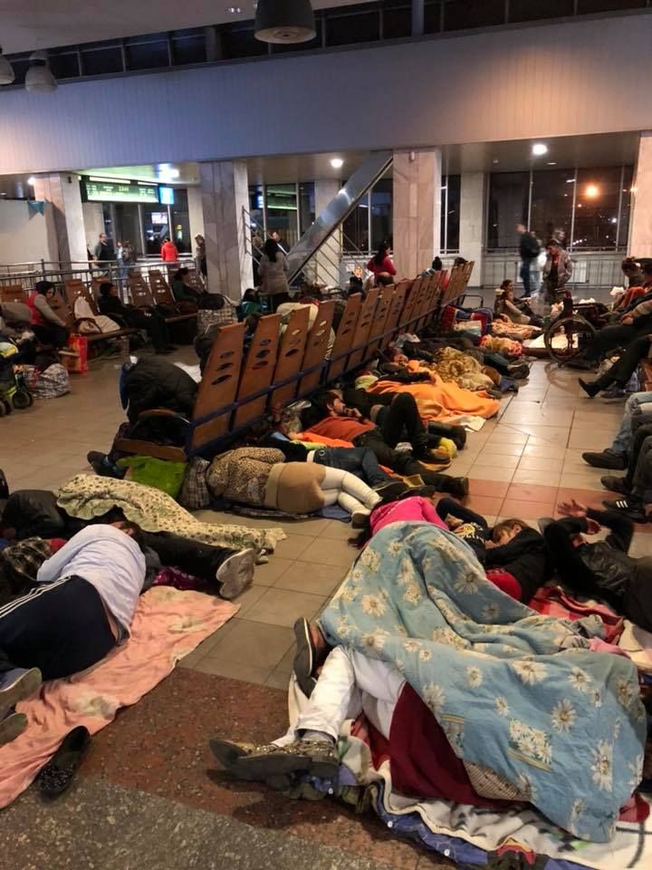 На кадрах видно, как люди спят на одеялах и сумках прямо на полу. Многие – матери с детьми. Среди многочисленной семьи ромов есть разновозрастные люди и инвалиды.