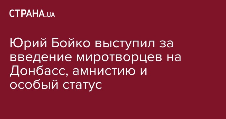 "Наша фракция с первого дня выступили за то, чтобы миротворцы были введены на линию разграничения, чтобы прекратилась стрельба. А вообще мы поддерживаем любую инициативу, которая позволит прекратить войну, а также вернуть территорию и людей в государство", - заявил Юрий Бойко.