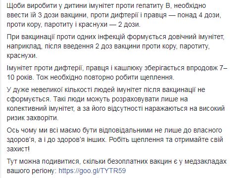 "Вот почему мы все должны быть ответственными не только к собственному здоровью, а и к здоровью других. Делайте прививки и получите свою защиту!", - отметила Супрун.