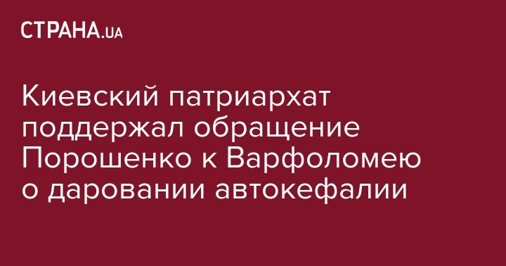 Киевский патриархат поддержал обращение Порошенко к Варфоломею о даровании автокефалии