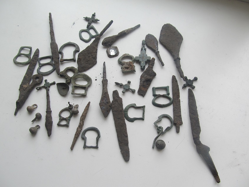 "В ходе осмотра, в рюкзаке водителя, 51-летнего гражданина Украины, выявлено значительное количество предметов старины. Среди обнаруженного - 14 наконечников к стрелам и копьям, 12 пряжек, 5 крестиков, 6 пуговиц и один элемент кольца. Все предметы ориентировочно датируются XIV - ХV веками", - говорится в опубликованном сообщении.