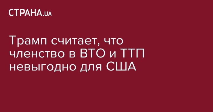 Дональд Трамп заявил, что членство во Всемирной торговой организации (ВТО) и Транстихоокеанском партнерстве (ТТП) невыгодно для США.