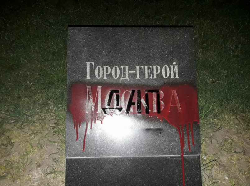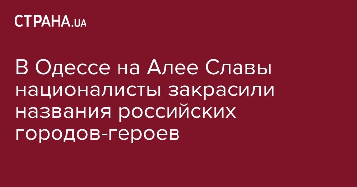 В Одессе на Аллее Славы члены радикальной националистической организации С14 закрасили названия российских городов-героев времен Великой отечественной войны и написали на их месте названия украинских городов в зоне АТО на Донбассе.