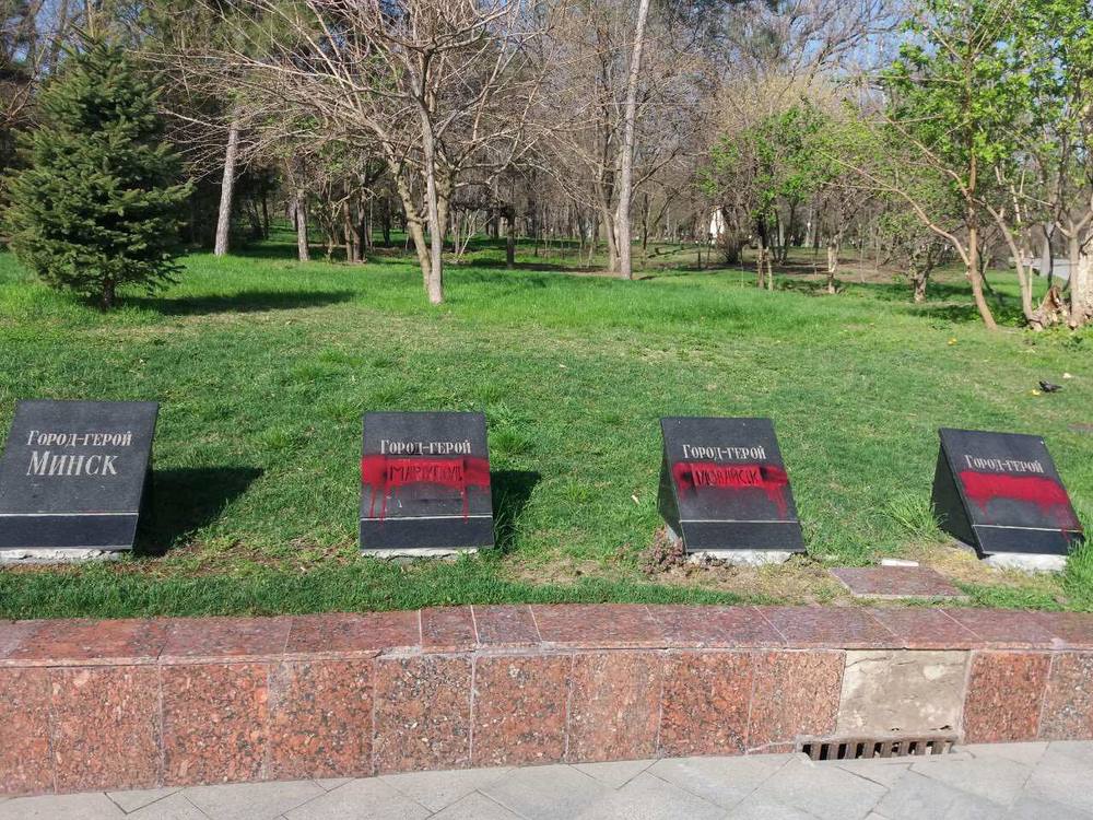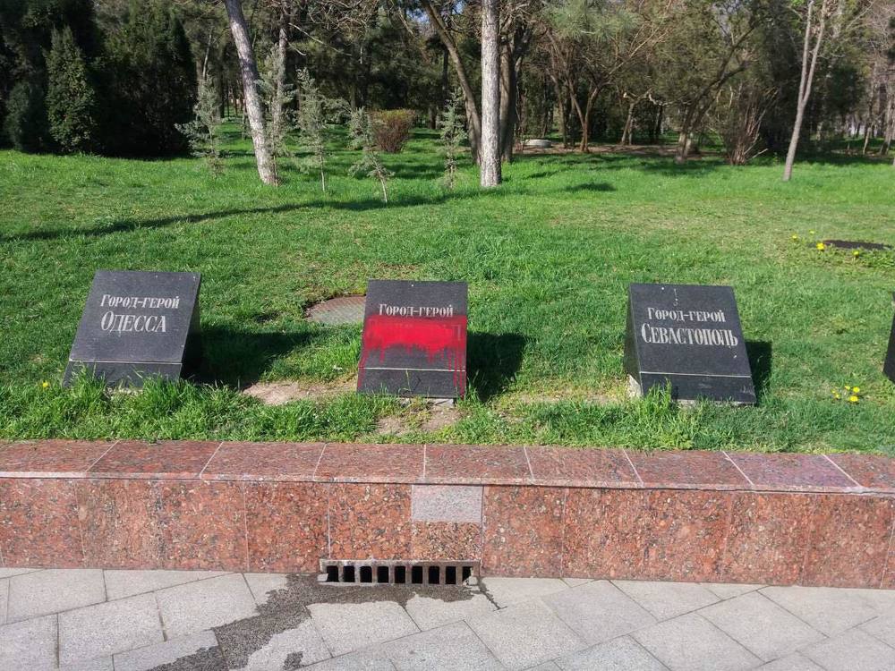 В Одессе на Алее Славы националисты закрасили названия российских городов-героев