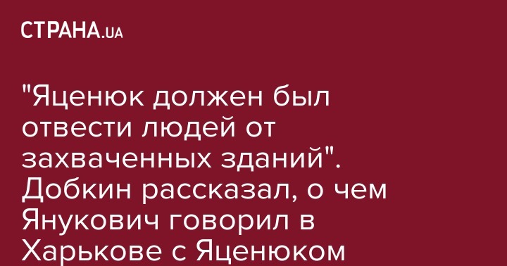 "Ему гарантировали соблюдение этого соглашения США и Россия, руководство этих стран. Но когда он (в Харькове - прим.ред) начала получать тревожные сигналы из Киева, он, находясь в нервном состоянии, попросил соединить его с Яценюком. Он по телефону сказал Яценюку, что тот и его люди не исполняют свои договоренности", - отметил Добкин.