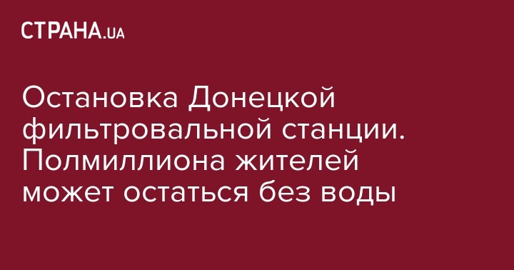 Остановка Донецкой фильтровальной станции. Полмиллиона жителей может остаться без воды
