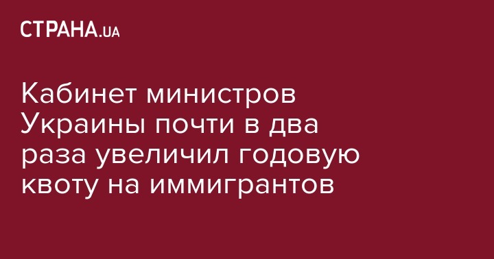 Соответствующее распоряжение "Об установлении квоты иммиграции на 2018 год" было принято 18 апреля во время заседания Кабмина, передает "Юрлига".