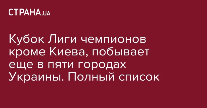 Кубок Лиги чемпионов кроме Киева, побывает еще в пяти городах Украины. Полный список