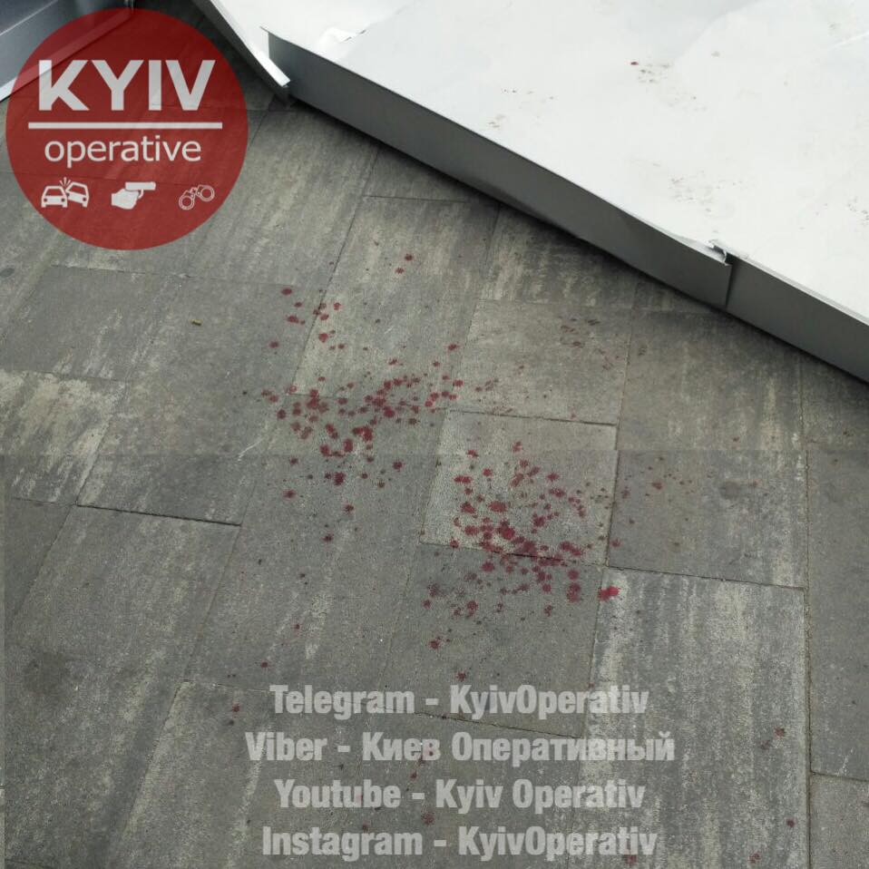 На опубликованных фото видны следы крови на тротуарной плитке возле подземного перехода.