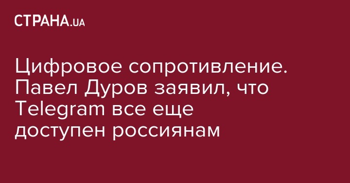Цифровое сопротивление. Павел Дуров заявил, что Telegram все еще доступен россиянам